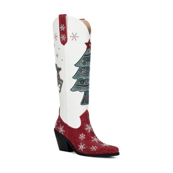 أحذية شتوية مخصصة WETKISS للنساء أحذية عالية في الركبة من حجر الراين الأبيض أحذية رعاة البقر الغربية أحذية برقبة للكريسماس