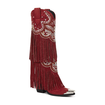 أحذية WETKISS مخصصة للحفلات الغربية للركبة أحذية رعاة البقر خمر شرابة اصبع القدم أحذية رعاة البقر مع المسامير
